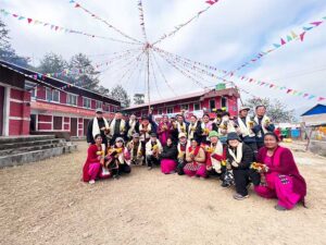 During the ceremony, both Serap Jangbu Sherpa and Mr. Le se Jung presented scholarships amounting to Rs. 13,000/- (NPR) and Rs. 12,700/- (NPR) respectively to some of the school children who are economically disadvantaged and in dire need of financial support. This gesture was a testament to their commitment to fostering good fellowship with their neighbors and supporting the community’s efforts to achieve their dreams.